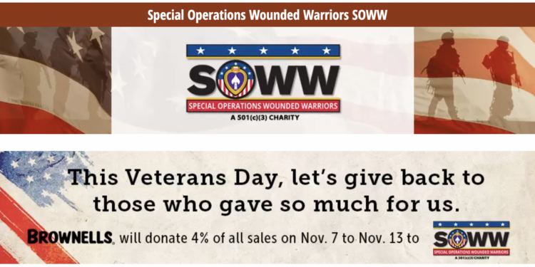 Brownells will observe Veterans Day week 2022 by donating a percentage of sales to Special Operations Wounded Warriors, a 501(c)3 charity committed to helping wounded veterans of the Special Operations community.