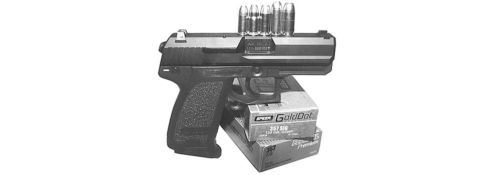 The .357 SIG cartridge was developed during the last three years in a joint effort by SIG and Federal Cartridge Company to provide ballistics in a semi-automatic pistol comparable to that of the highly respected .357 magnum revolver cartridge. With muzzle velocities of 1,350 fps or greater and energy figures at the muzzle in excess of 510 foot pounds, it can be safely said that performance nearly equal to that of the .357 magnum round is alive and well in a concealable 11-shot (13 for law enforcement) autoloader like the HK USP357 Compact pistol. For those who favor higher velocity, lower projectile cartridges over heavy, slow movers the .357 SIG cartridge would be one to seriously consider. Tests in 10% ballistic gelatin have shown the .357 SIG cartridge to be an excellent choice where over penetration is unwanted, as the projectiles tend to expand rapidly as a result of their relatively high terminal velocity. The .357 SIG cartridge reportedly performs well against vehicle windshields and body panels, obstacles often standing in the way during police shootings. In the short time it has been available the somewhat obscure .357 SIG cartridge has been selected by several large law enforcement organizations to include the Virginia and Delaware State Police Departments and the Texas Department of Public Safety. Recently, it is reported that the U.S. Secret Service has also started to rearm their personnel with a semi-auto in this caliber.